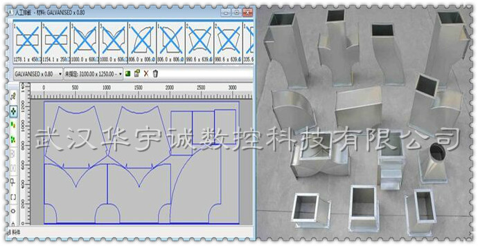 武漢華宇誠數(shù)控生產(chǎn)的通風(fēng)管道數(shù)控等離子切割機,針對風(fēng)管展開切割進行了專門優(yōu)化。切割速度更快、切割精度更高、切割效果更好。并搭配專門的風(fēng)管展開軟件,用戶只需選擇要切割的風(fēng)管類型,輸入相應(yīng)尺寸參數(shù),便可自動排料、自動生成加工程序,用戶直接用U盤在切割機上調(diào)入加工程序切割即可。